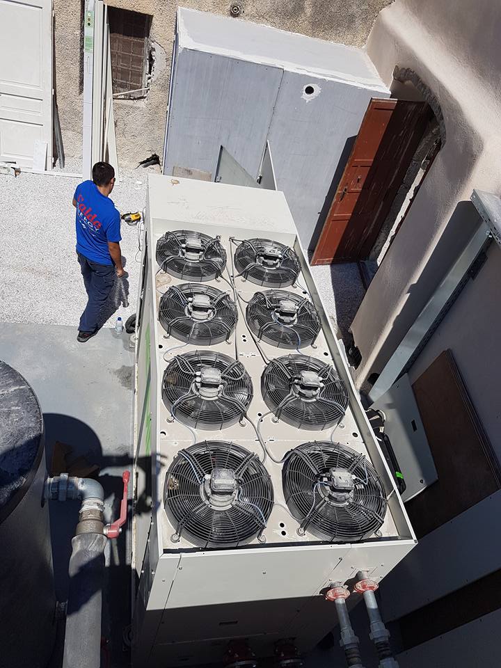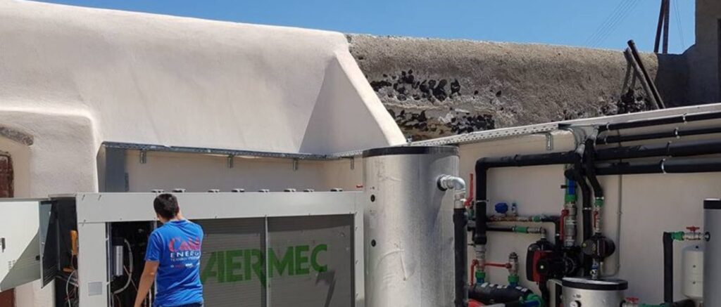 Στο οινοποιείο Κάναβα Χρυσού – Τσέλεπου στη Σαντορίνη εγκαταστάθηκε αερόψυκτος ψύκτης AERMEC NRL 0350 EP1, ψυκτικής ικανότητας 83 kW, για την υποστήριξη της παραγωγικής διαδικασίας της οινοποίησης.