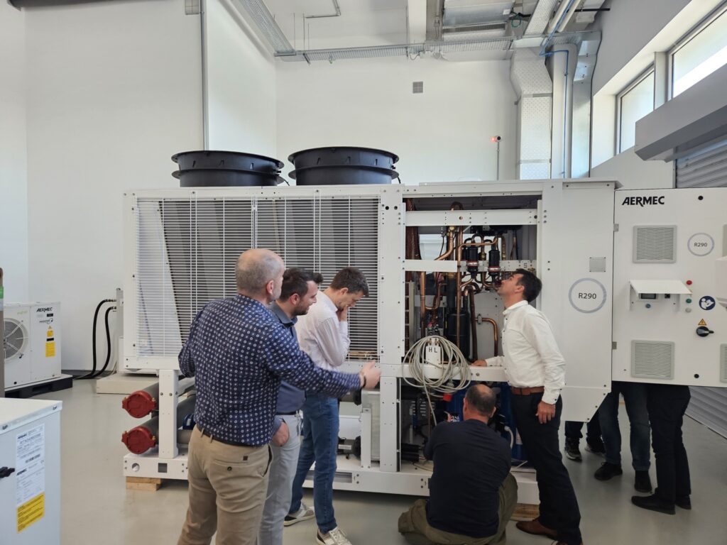 Στο πλαίσιο αυτής της μετάβασης, ομάδα μηχανικών και τεχνικών της CALDA ENERGY επισκέφθηκε τις υπερσύγχρονες εγκαταστάσεις της Aermec στην Ιταλία, συμμετέχοντας σε εξειδικευμένη εκπαίδευση πάνω στα νέα μοντέλα συστημάτων που αξιοποιούν το R290. Πρόκειται για ένα φυσικό ψυκτικό μέσο με χαμηλό δυναμικό υπερθέρμανσης του πλανήτη (GWP) και υψηλή ενεργειακή απόδοση.