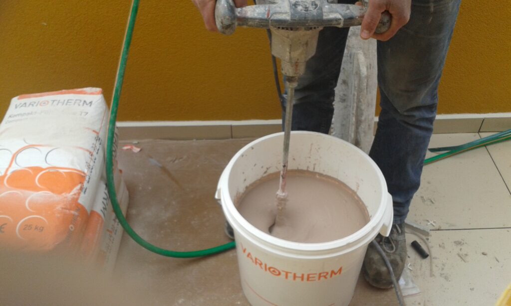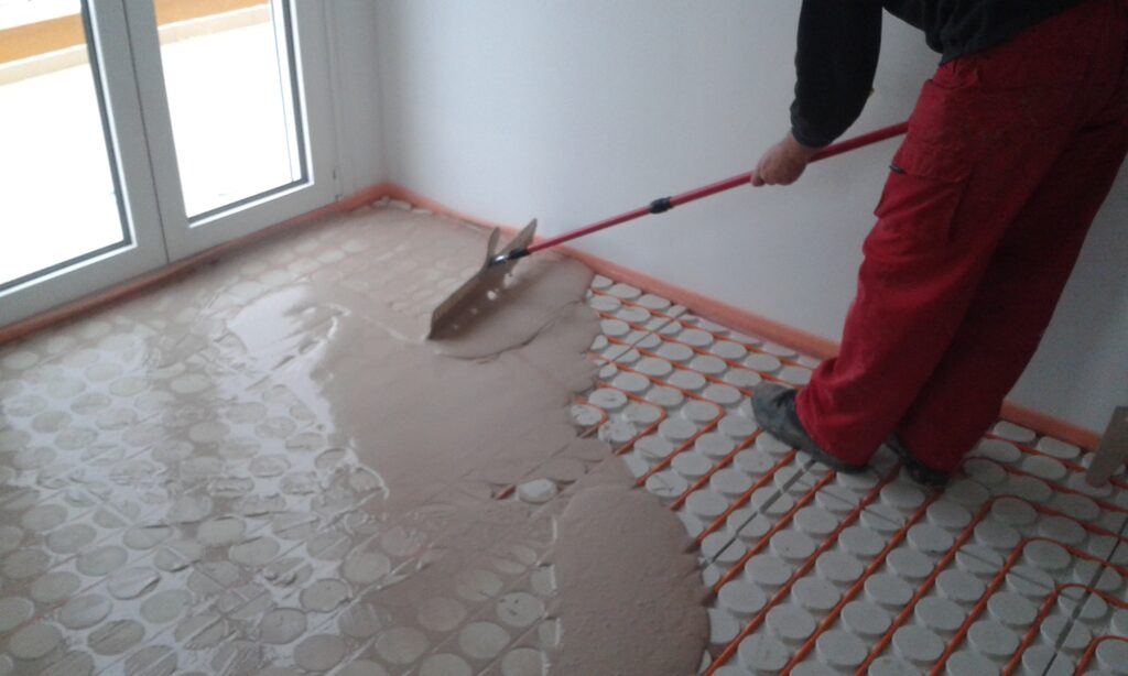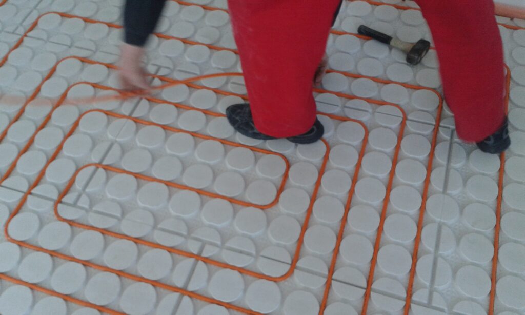 The multilayer pipe was placed in a 10 cm “meander” layout, followed by the application of the specialized Filling Compound T7 across the entire surface, creating a uniform substrate ready for the final floor covering.