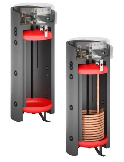 με επιπλέον εναλλάκτη (σερπαντίνα) για συνδυασμό με μία βοηθητική πηγή ενέργειας (λέβητας, ηλιακό πεδίο)