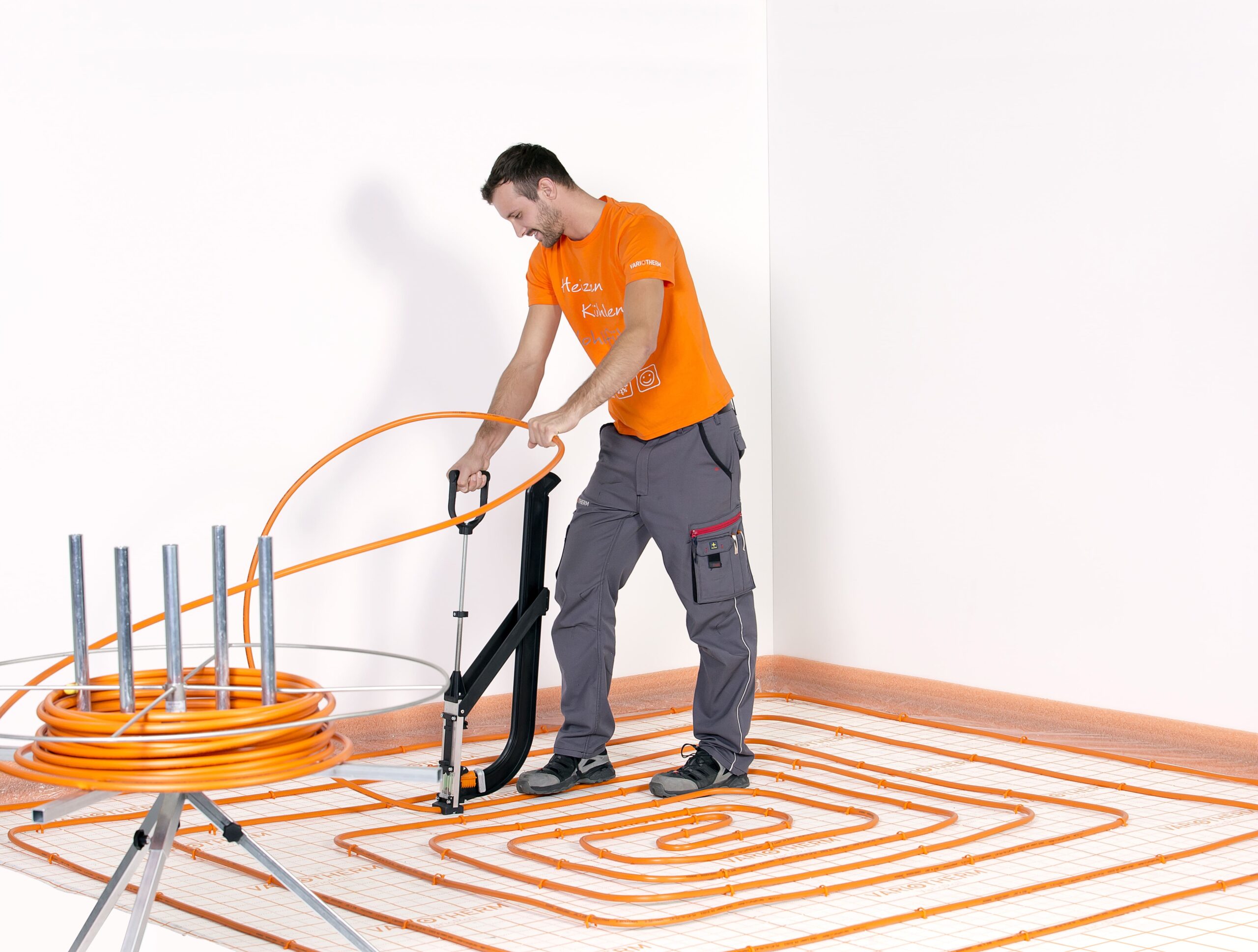 Το σύστημα Varioroll της VARIOTHERM είναι ένα ευέλικτο σύστημα θέρμανσης δαπέδου με θερμομονωτική πλάκα σε μορφή ρολού με επικάλυψη ειδικής μεμβράνης. Η στήριξη του σωλήνα γίνεται με την βοήθεια ενός ειδικού εργαλείου Tacker και την χρήση ειδικών clips πάνω στην επιφάνεια του ρολού. Η θερμομονωτική πλάκα του VarioRoll είναι κατασκευασμένη από ειδική ηχοαπορροφητική διογκωμένη πολυστερίνη EPS T, με εκτυπωμένο πλέγμα για ευθυγραμμισμένη τοποθέτηση σωλήνων, και η επικάλυψη με υφασμάτινη μεμβράνη προστατεύει τη μόνωση και ενισχύει τη συγκράτηση των καρφιών.